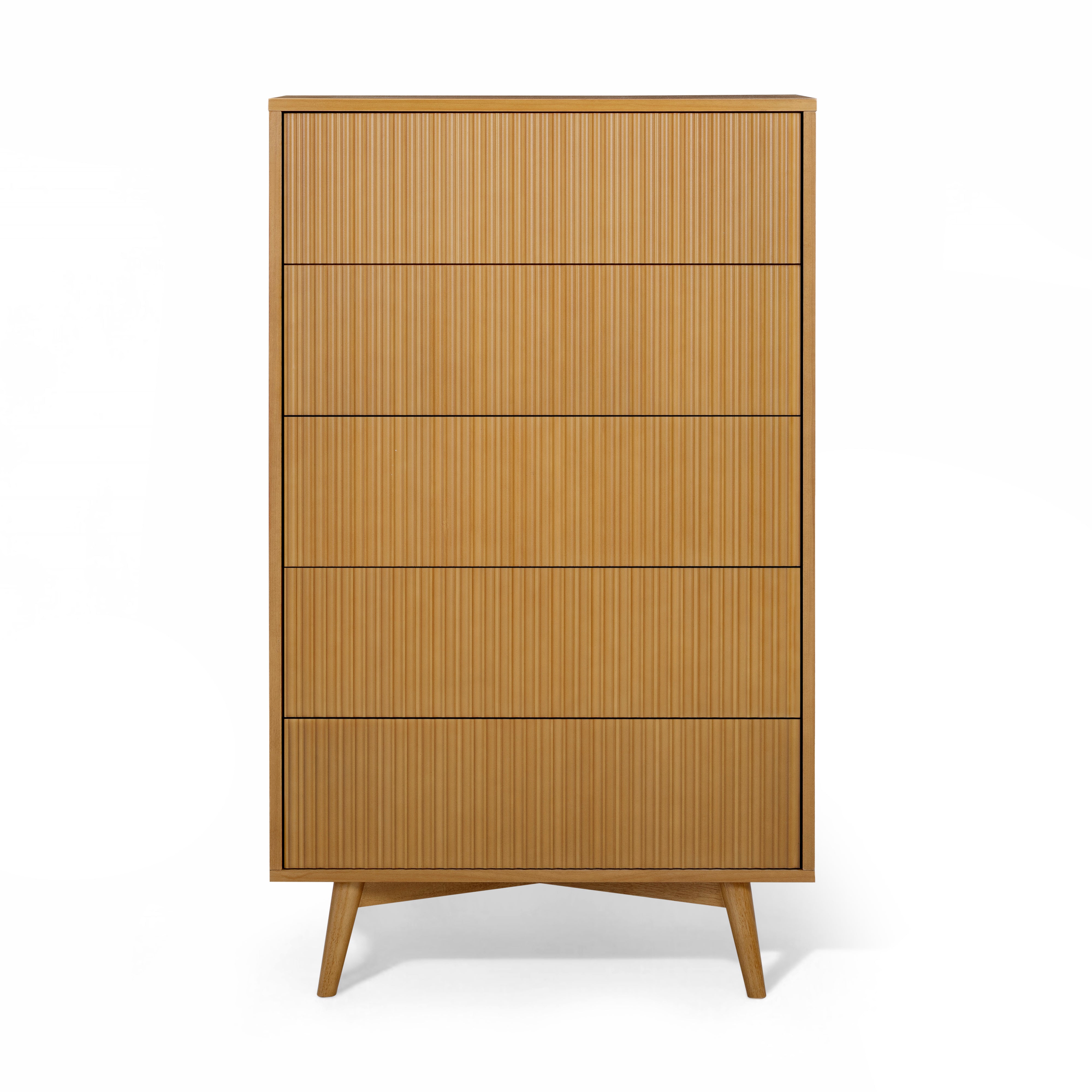 Teamson Home Tremolo Wood Dresser 127 cm tall with 5 Fluted Push-Open Drawers Natural