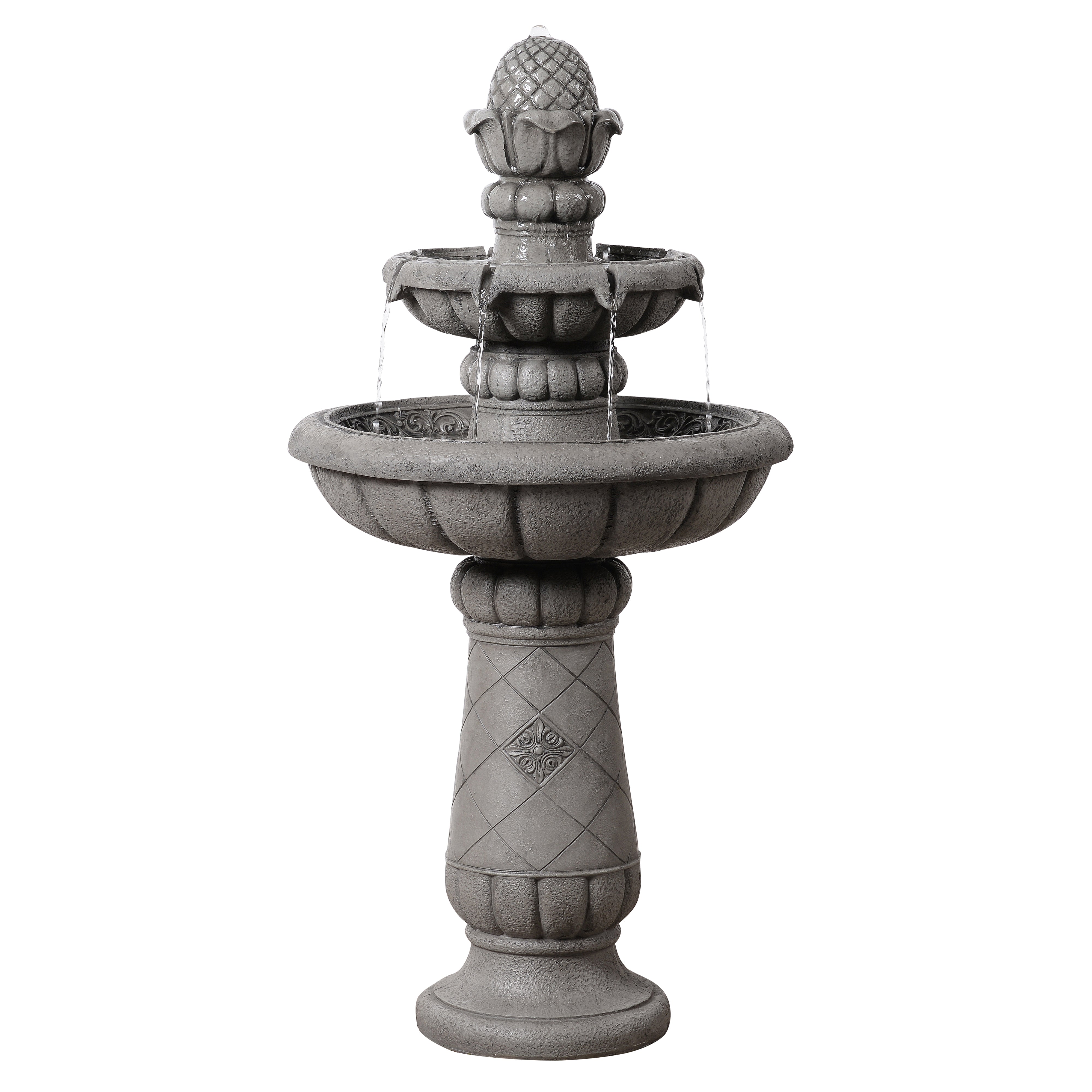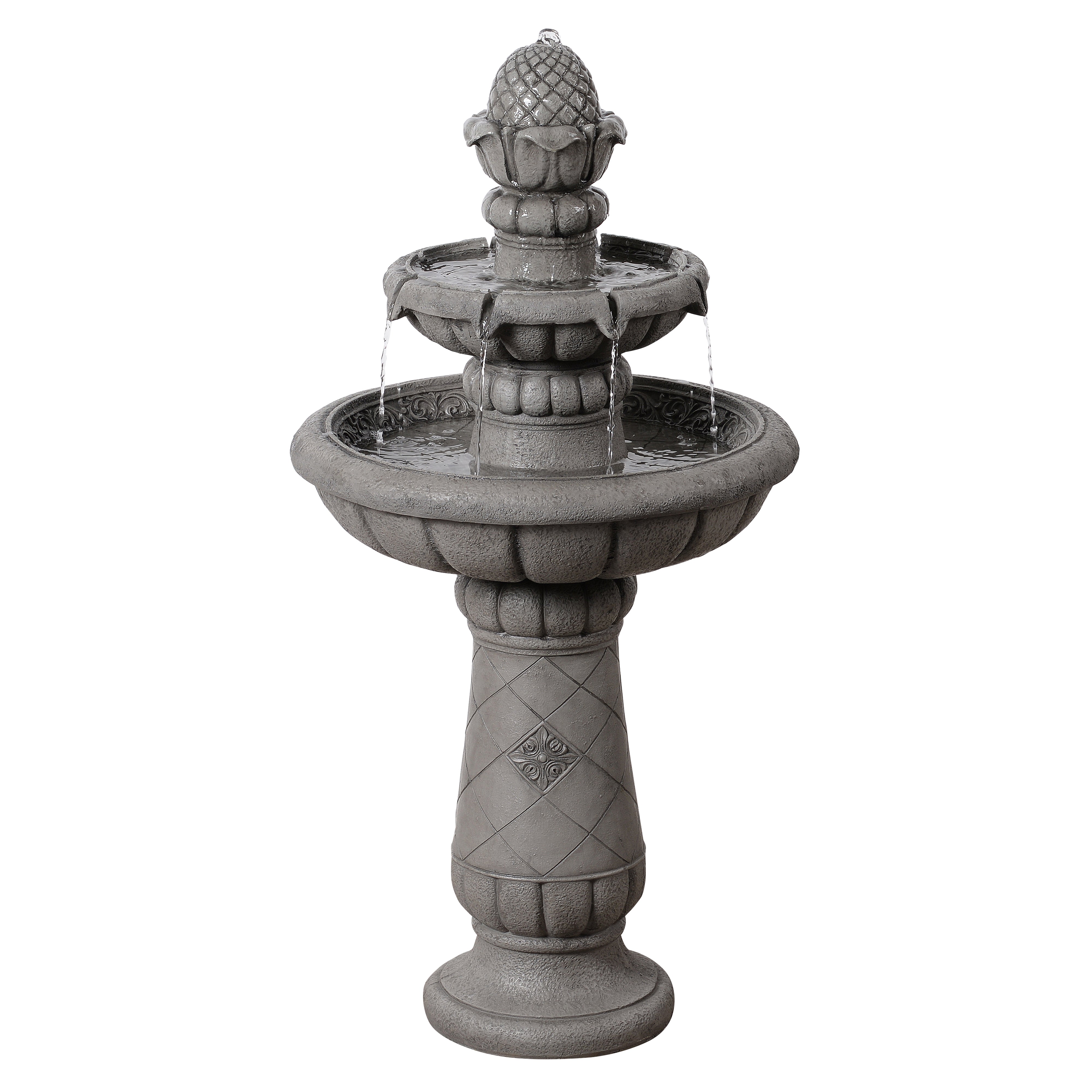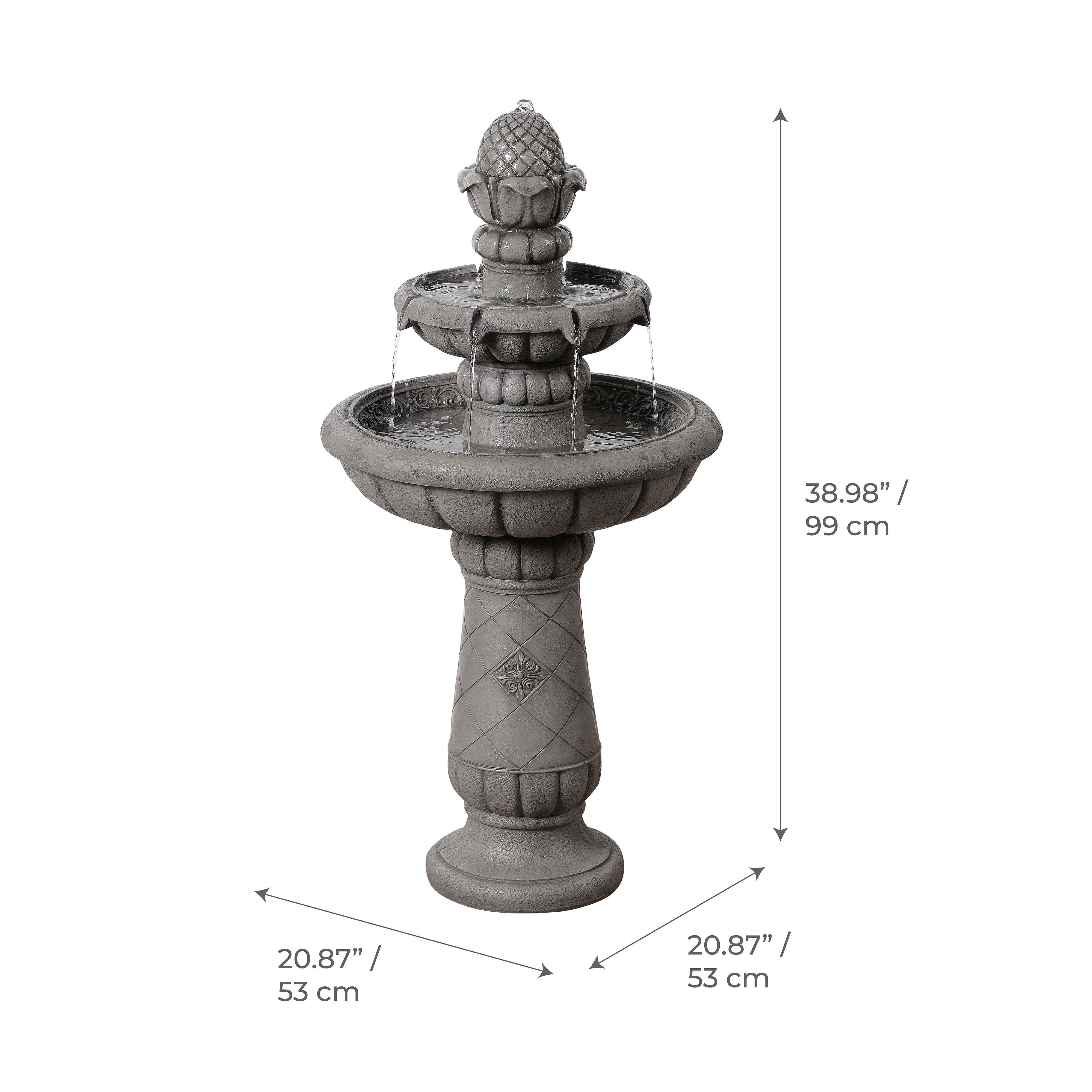 Designed to add calm and character to outdoor settings, the Teamson Home 99 cm tall Two-Tier Grey Birdbath Fountain blends classic form with gentle water movement. It creates a soothing focal point while inviting birds into your garden. Water flows smoothly from the upper bowl into the lower basin, producing a soft, relaxing sound that enhances patios, lawns and seating areas. The shallow upper tier doubles as a birdbath, offering a safe place for birds to drink and bathe while adding life and motion to your outdoor space. Constructed from durable polyresin, fibreglass and metal, the fountain delivers the appearance of weathered stone while remaining lightweight and resistant to outdoor conditions.