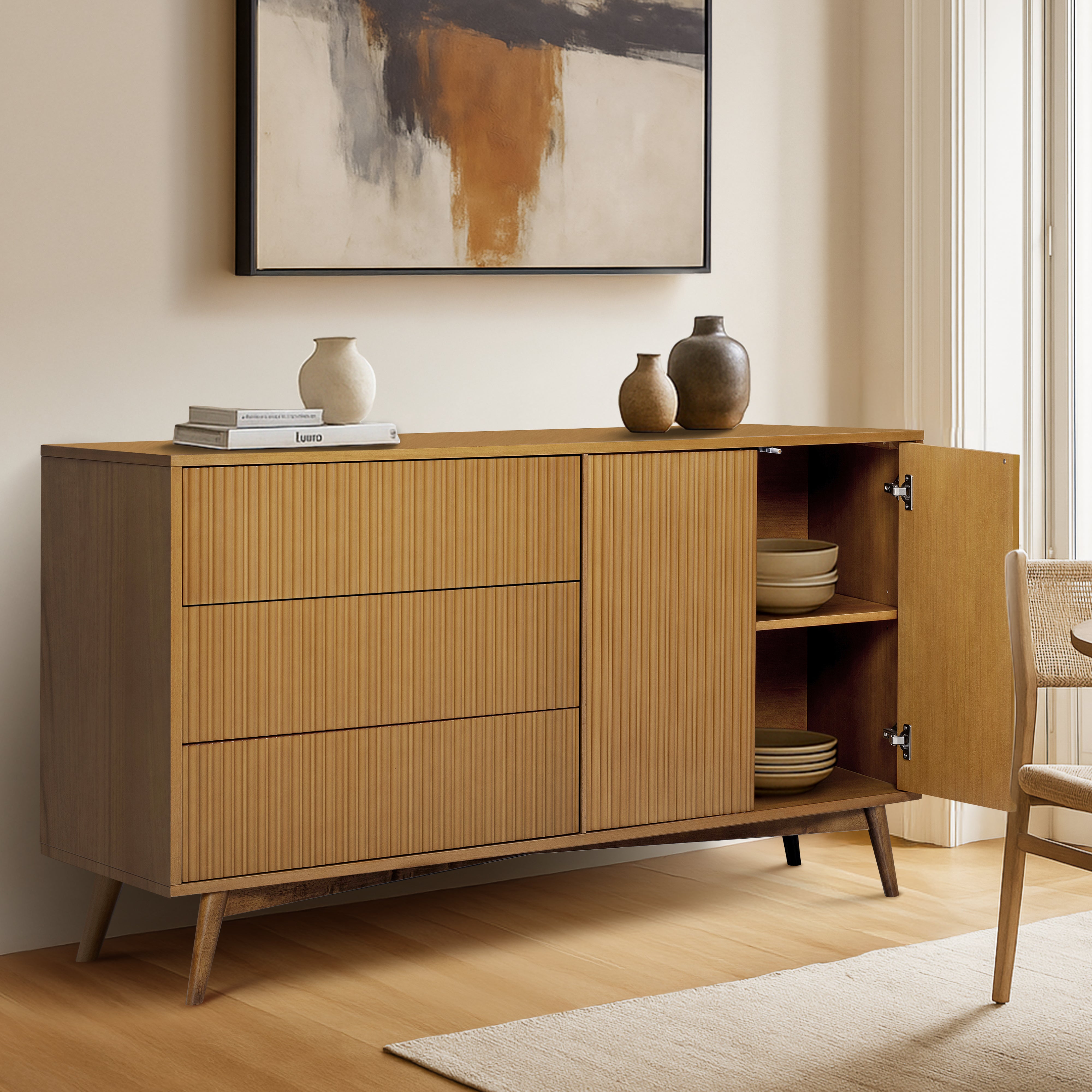 Teamson Home Tremolo Sideboard 140 cm wide with 3 Drawers Doors Fluted Fronts Natural