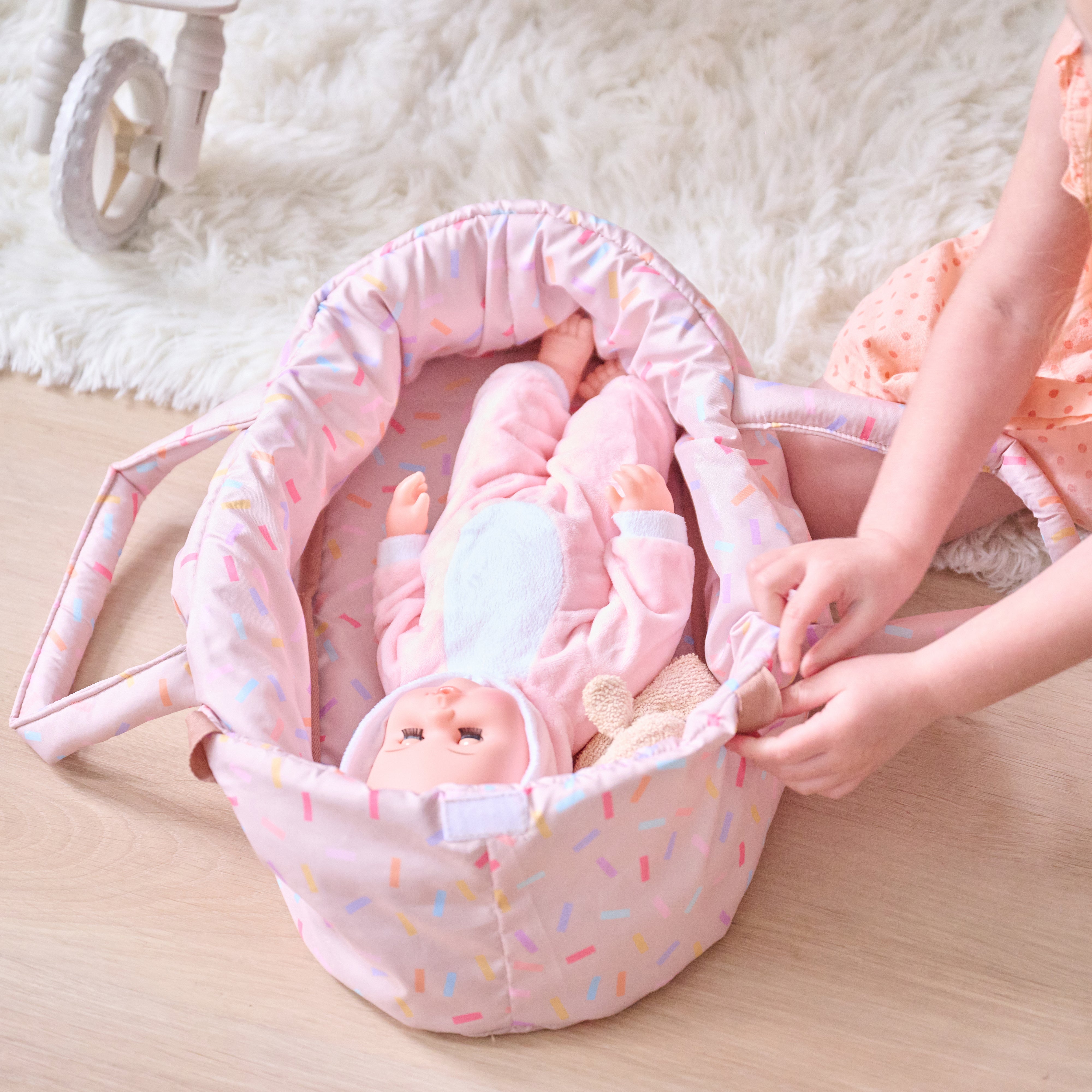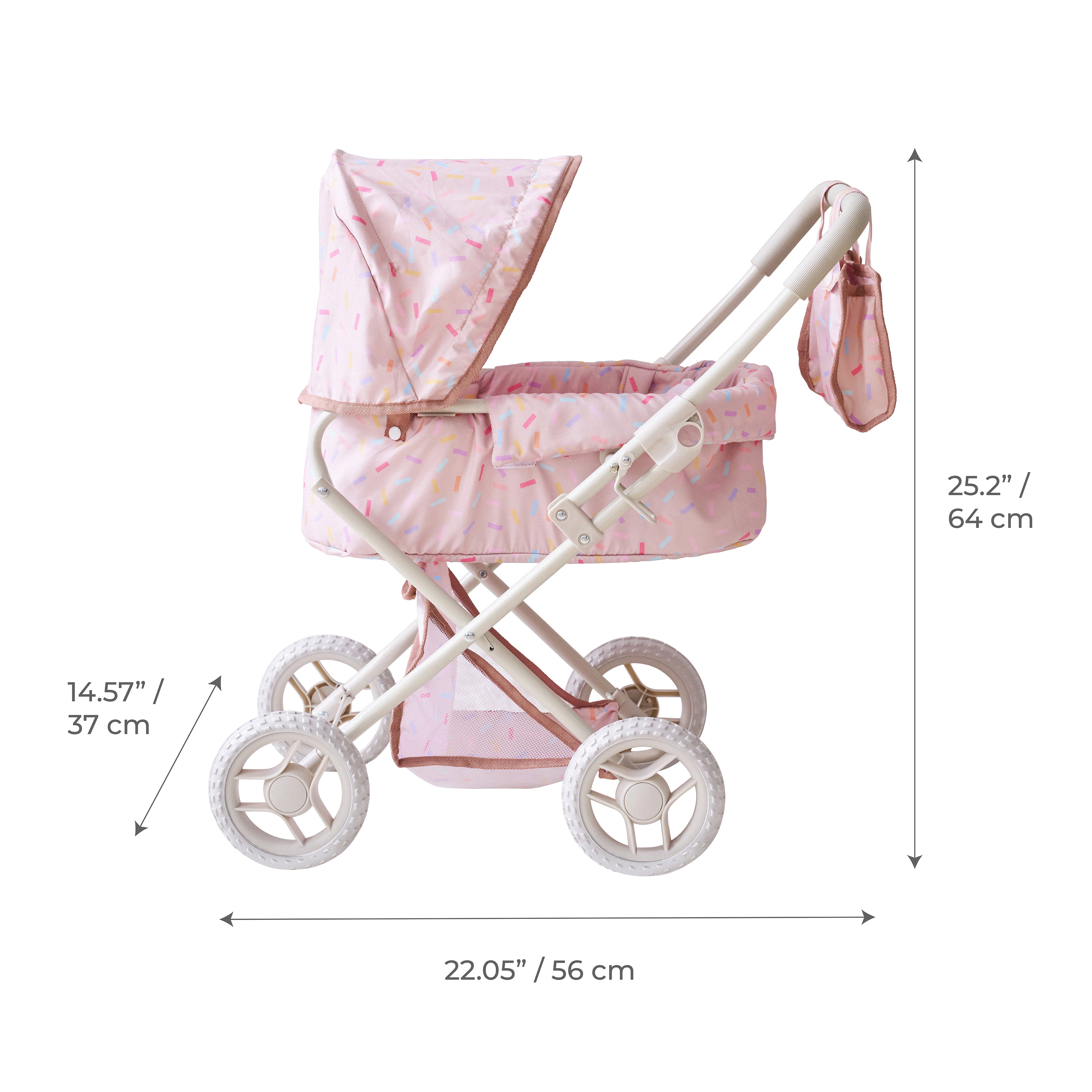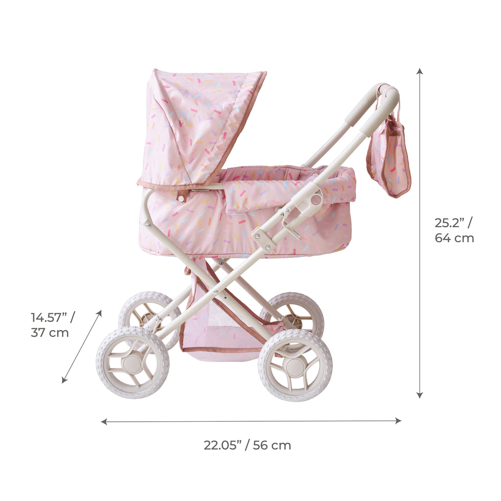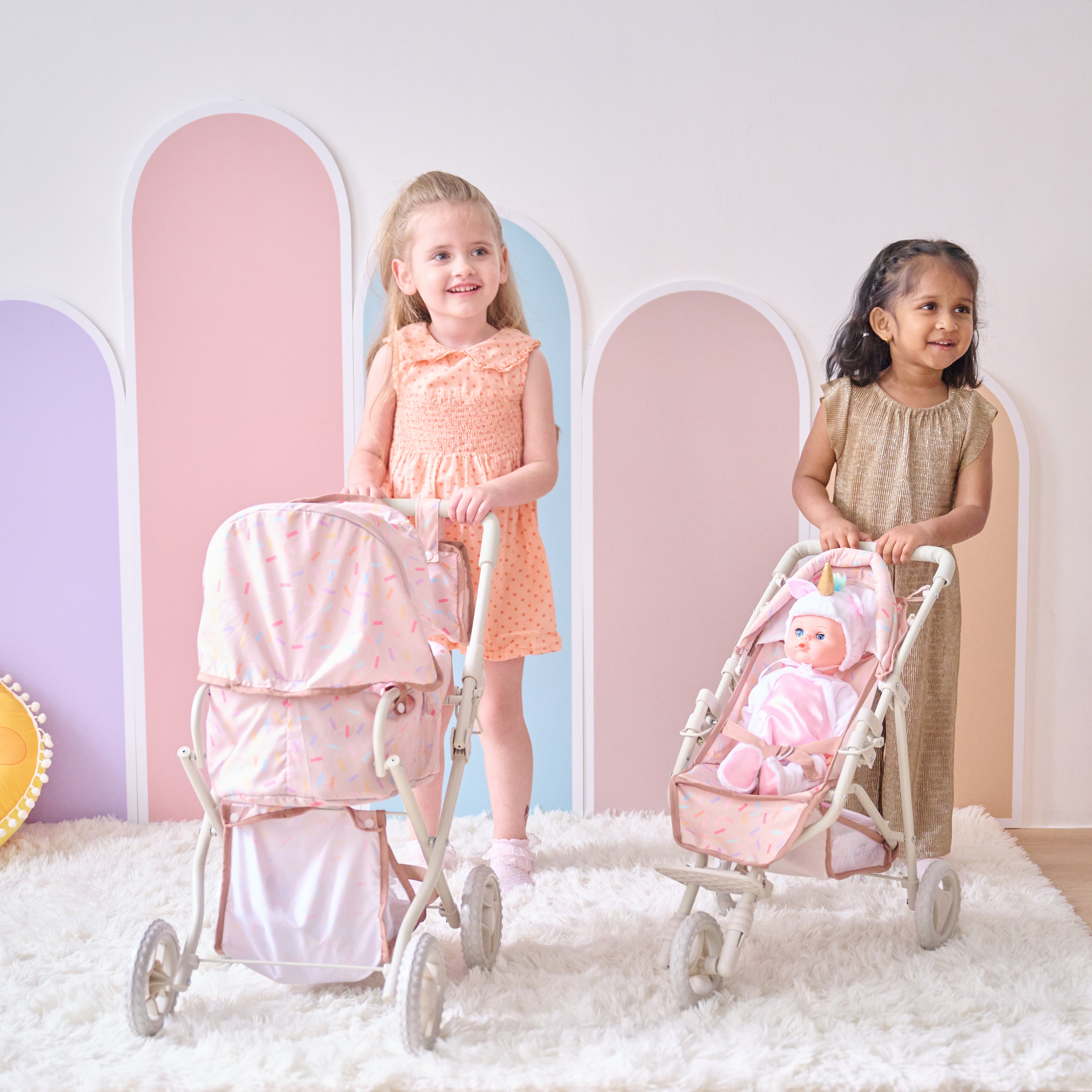 As they place their baby doll into the stroller, adjust the canopy, or gather items in the matching nursery bag, children practice empathy, responsibility, and coordination. The stroller encourages movement and focus, helping little ones stay engaged in creative, screen-free play that builds valuable life skills. The compact size and foldable frame make it a practical choice for everyday use. It is easy to store after playtime and travels well to parks, playdates, or family trips. Soft, colourful fabric details and smooth-rolling wheels ensure comfort and ease for small hands to push indoors or outside.