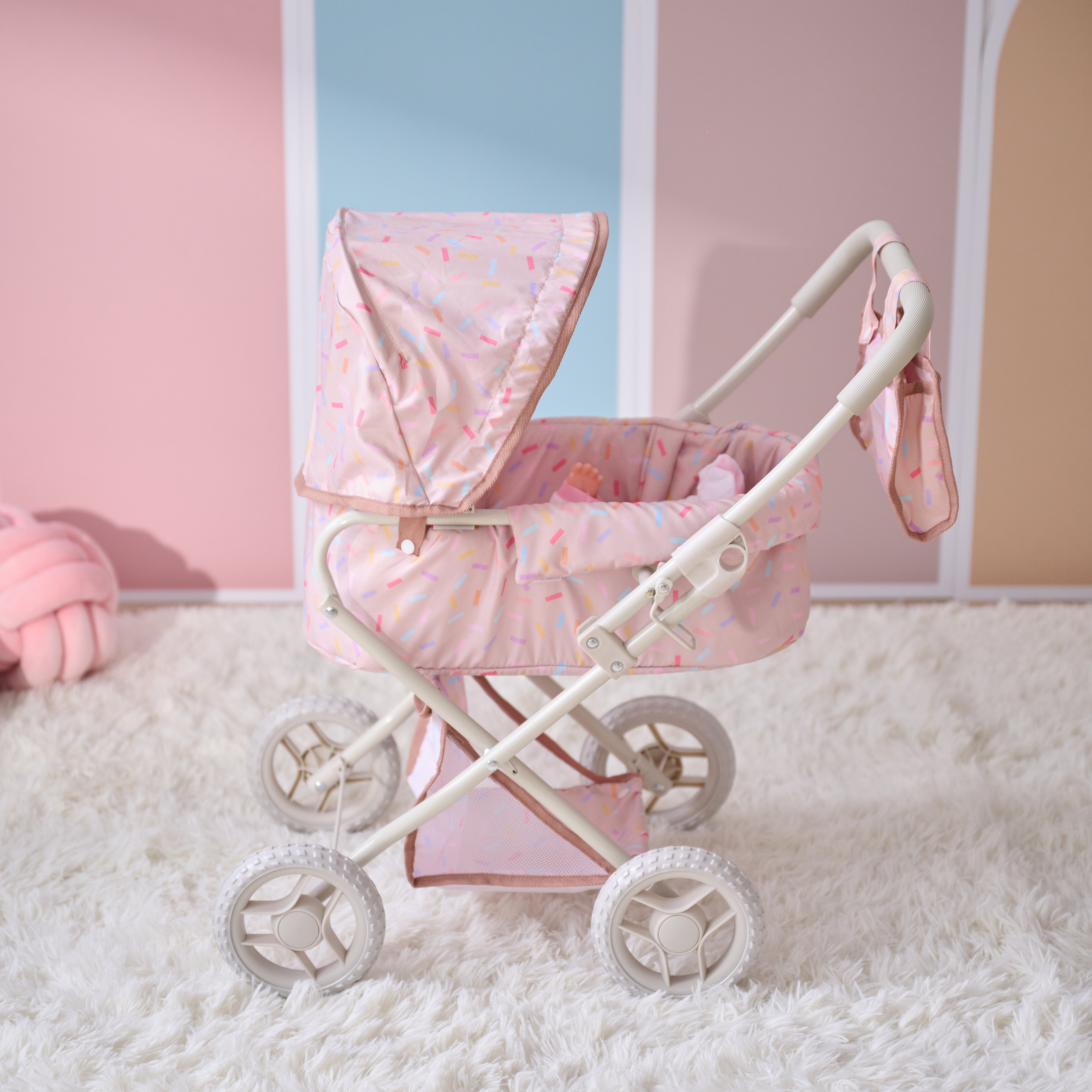 This 2-in-1 baby doll stroller provides more than just fun, since it supports emotional development, independence, and daily routines for toddlers and young kids. With a detachable bassinet and classic pram-style frame, children can care for their dolls in a realistic and engaging way that mirrors everyday activities.