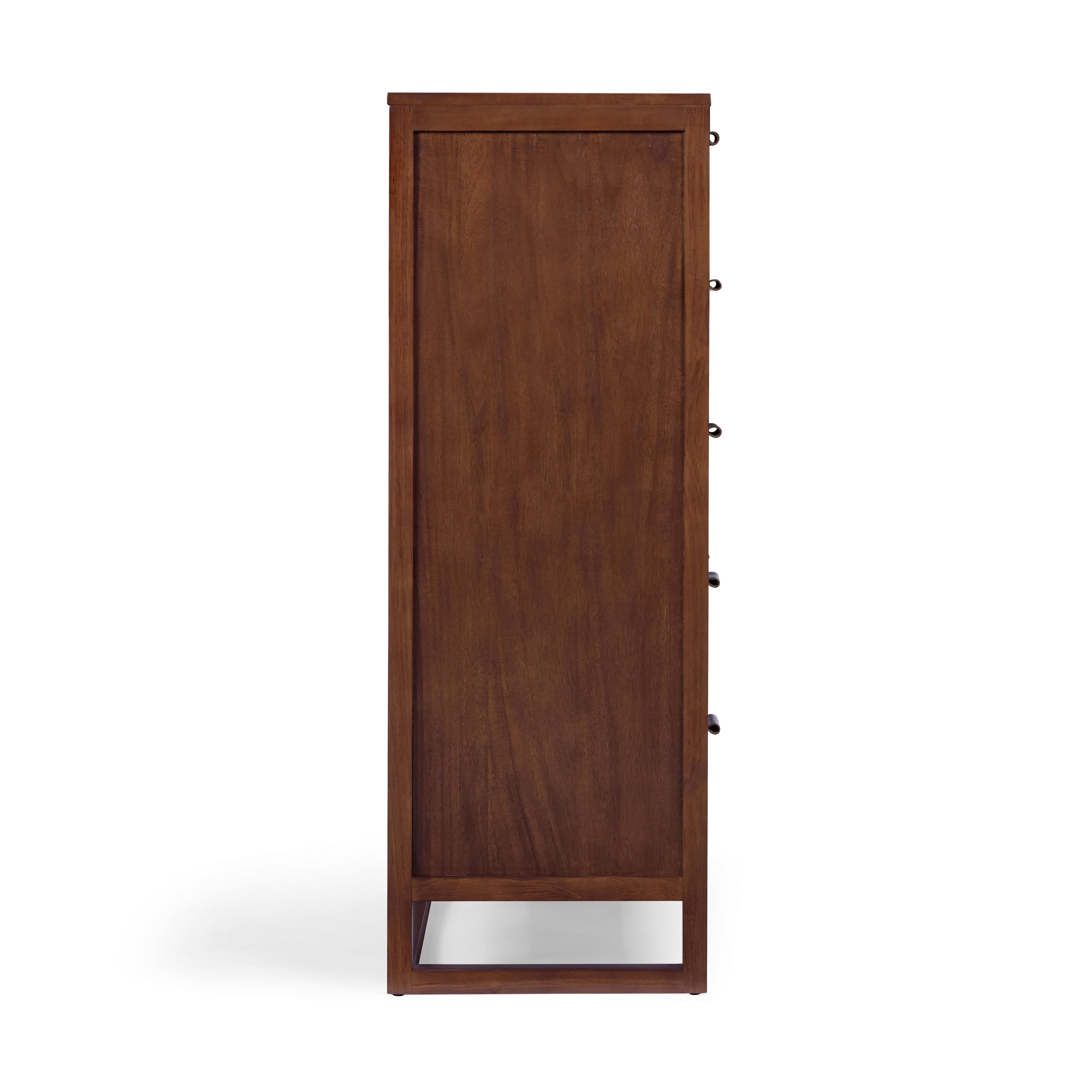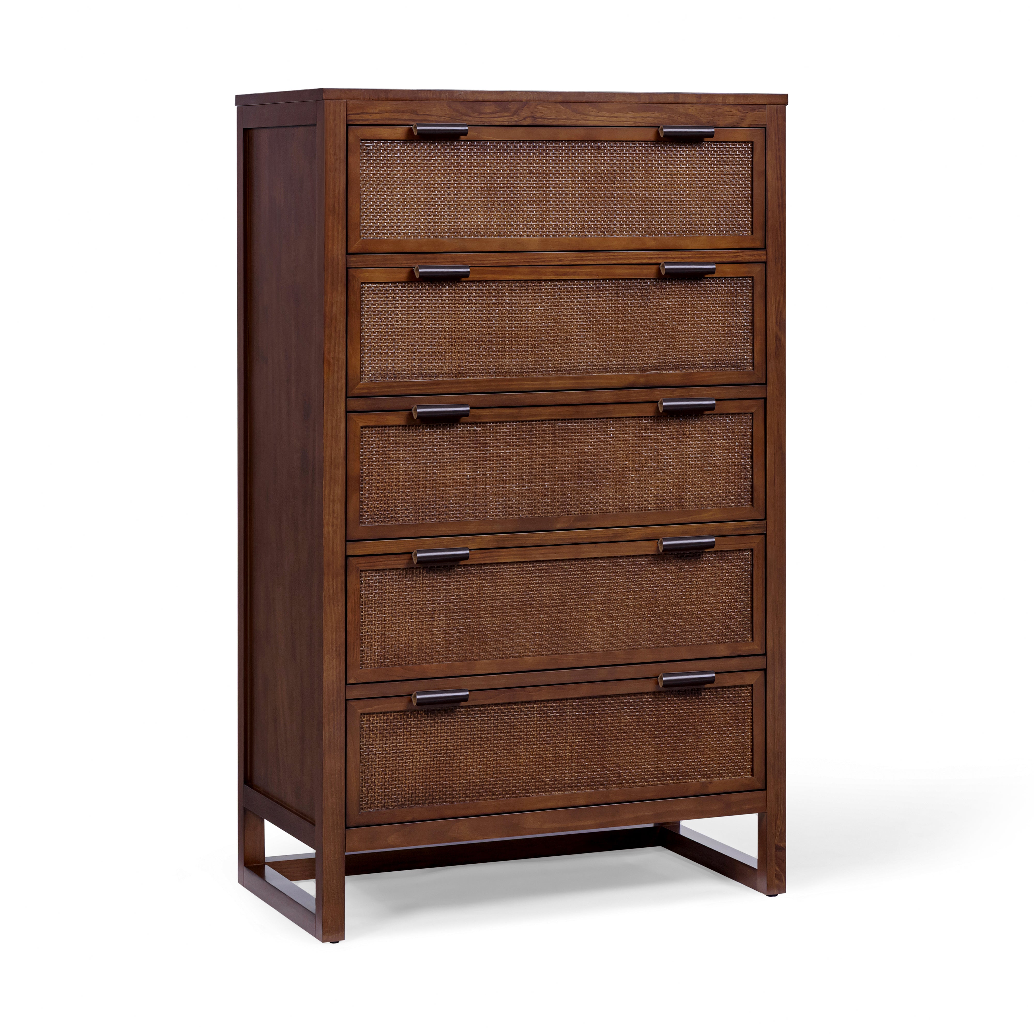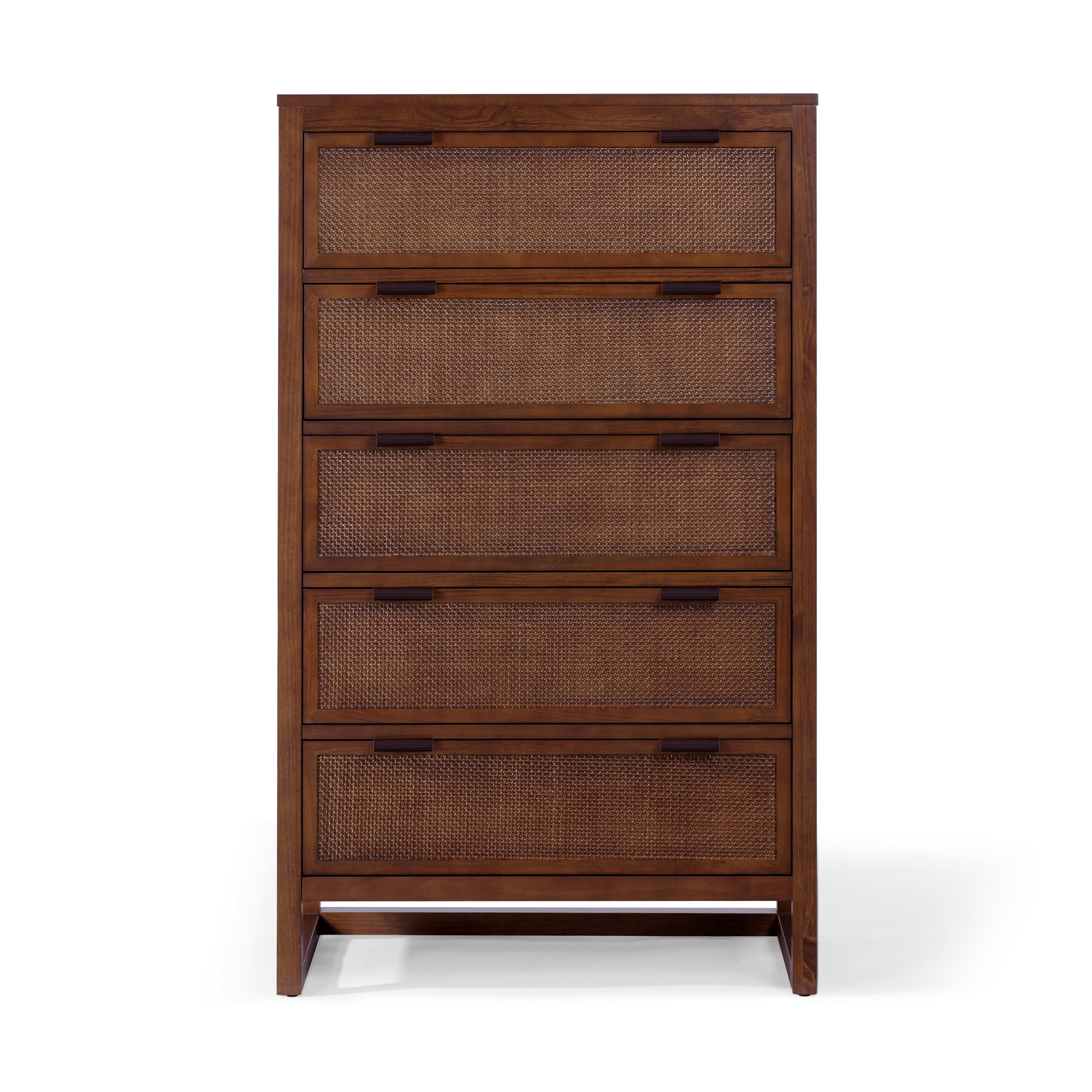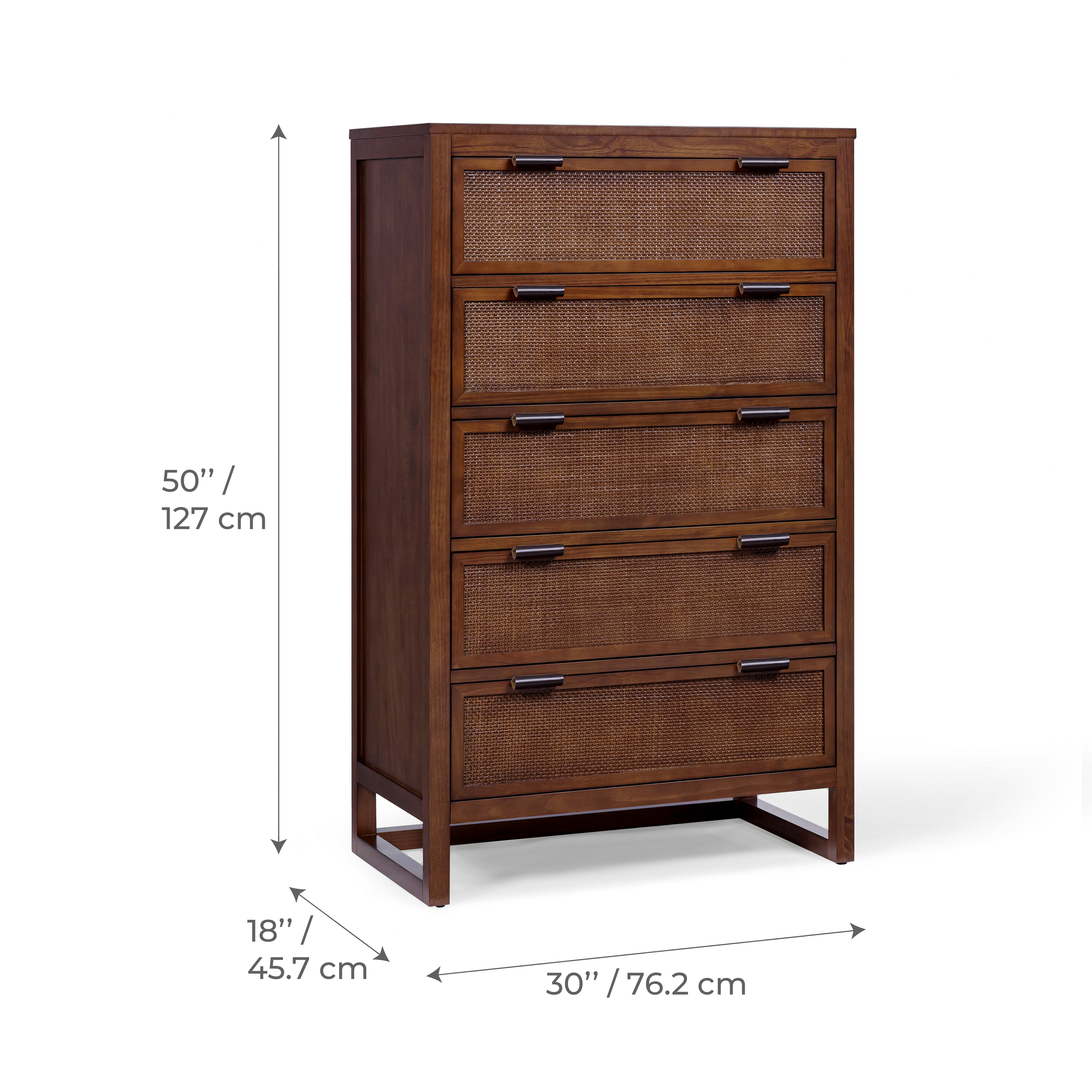 Teamson Home Hatteras Walnut Wood Dresser 127cm tall with 5 Rattan Drawers, Walnut