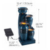 Bring the serenity of flowing water to your patio, garden, or deck with this captivating solar-powered Teamson Home 28.74" Outdoor 4-Tier Cascading Bowl Solar Fountain. The gleaming teal blue finish with brown distressing adds a touch of rustic charm to any outdoor living space, while its contemporary design elevates the aesthetic with a modern flair. This water feature includes a solar-powered pump and LED lights to create a unique visual as the three lower tiers are illuminated underwater.