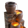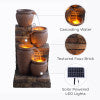 Solar-powered decorative 4-tier outdoor water fountain in a rustic, multi-brown finish